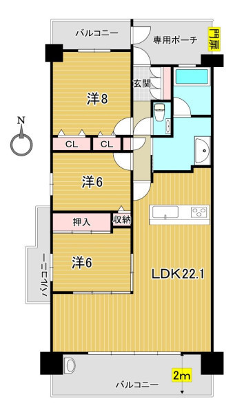 | 間取り | 3LDK | 間取り向き | (角部屋) |